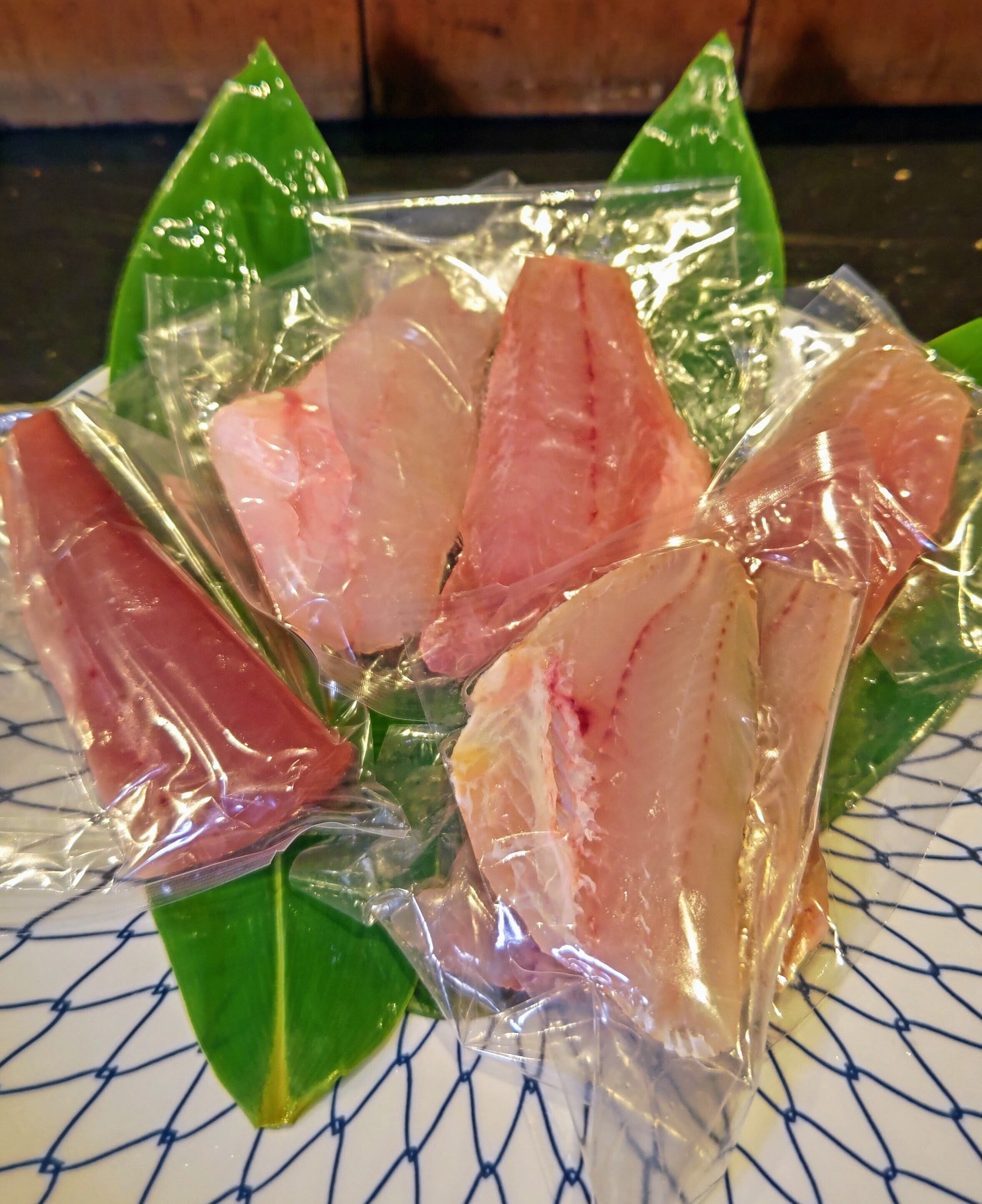 5種類の旬な魚の柵切りパックセット、夕食のもう一品、晩酌のお供に最適です。